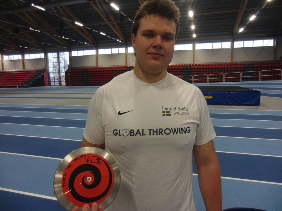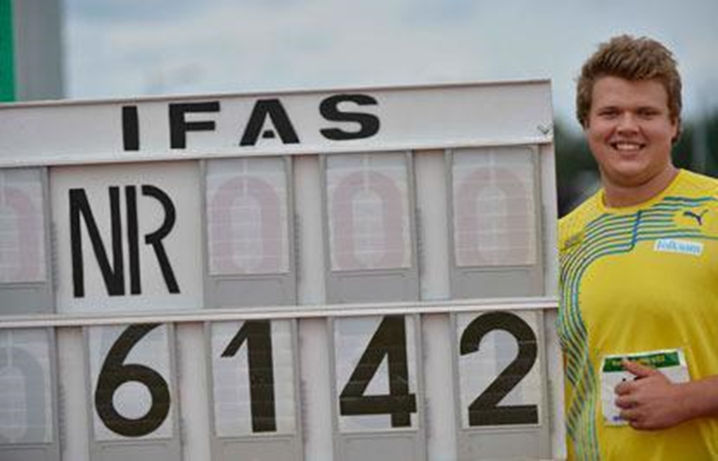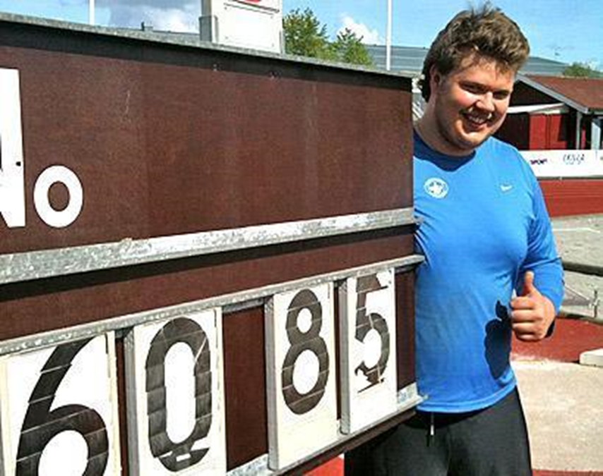 Caption: Daniel after throwing his personal best with the 1.75kg discus as a Junior in 2011 in Bålsta, Sweden